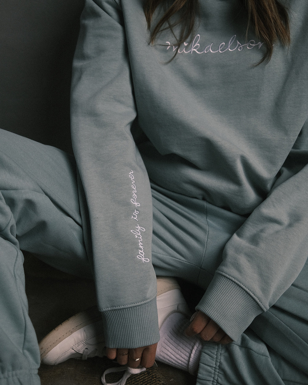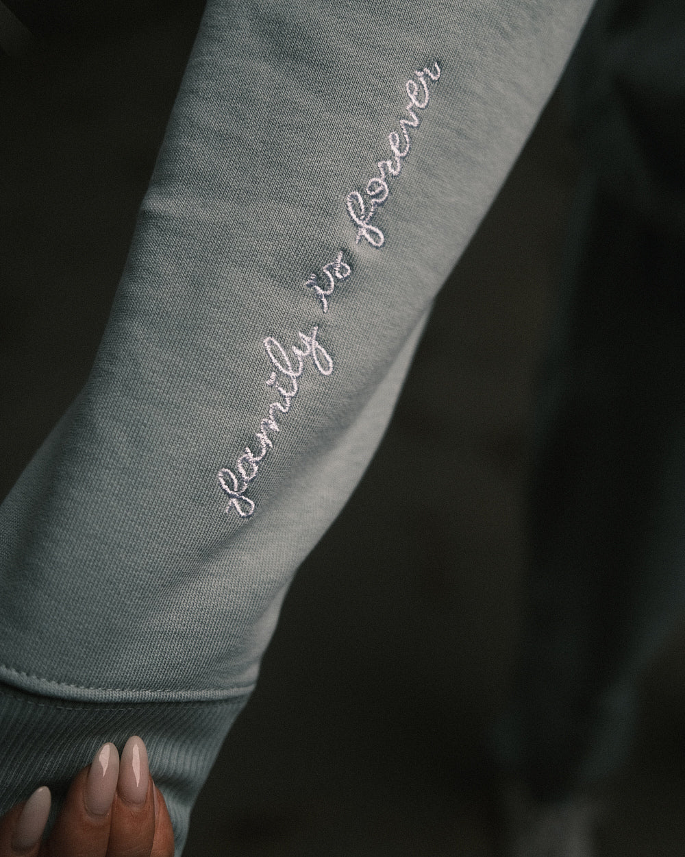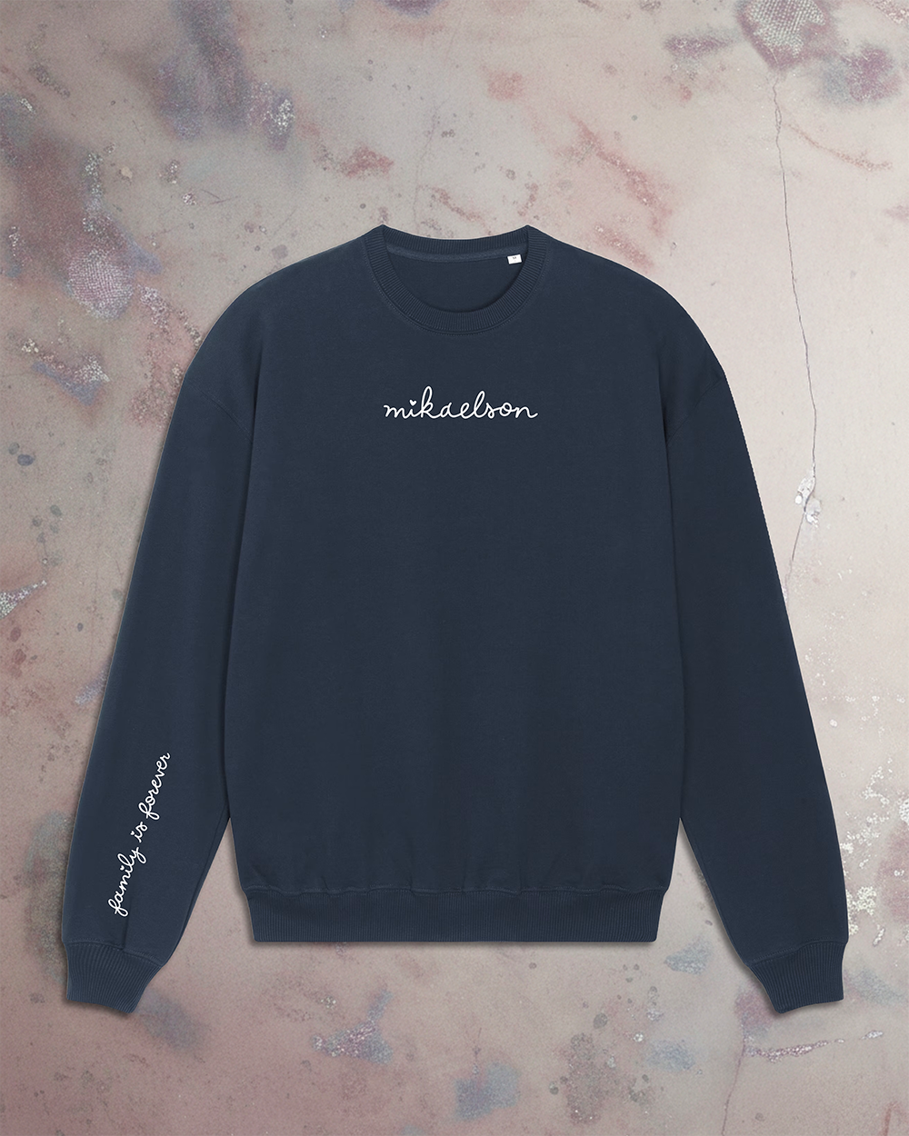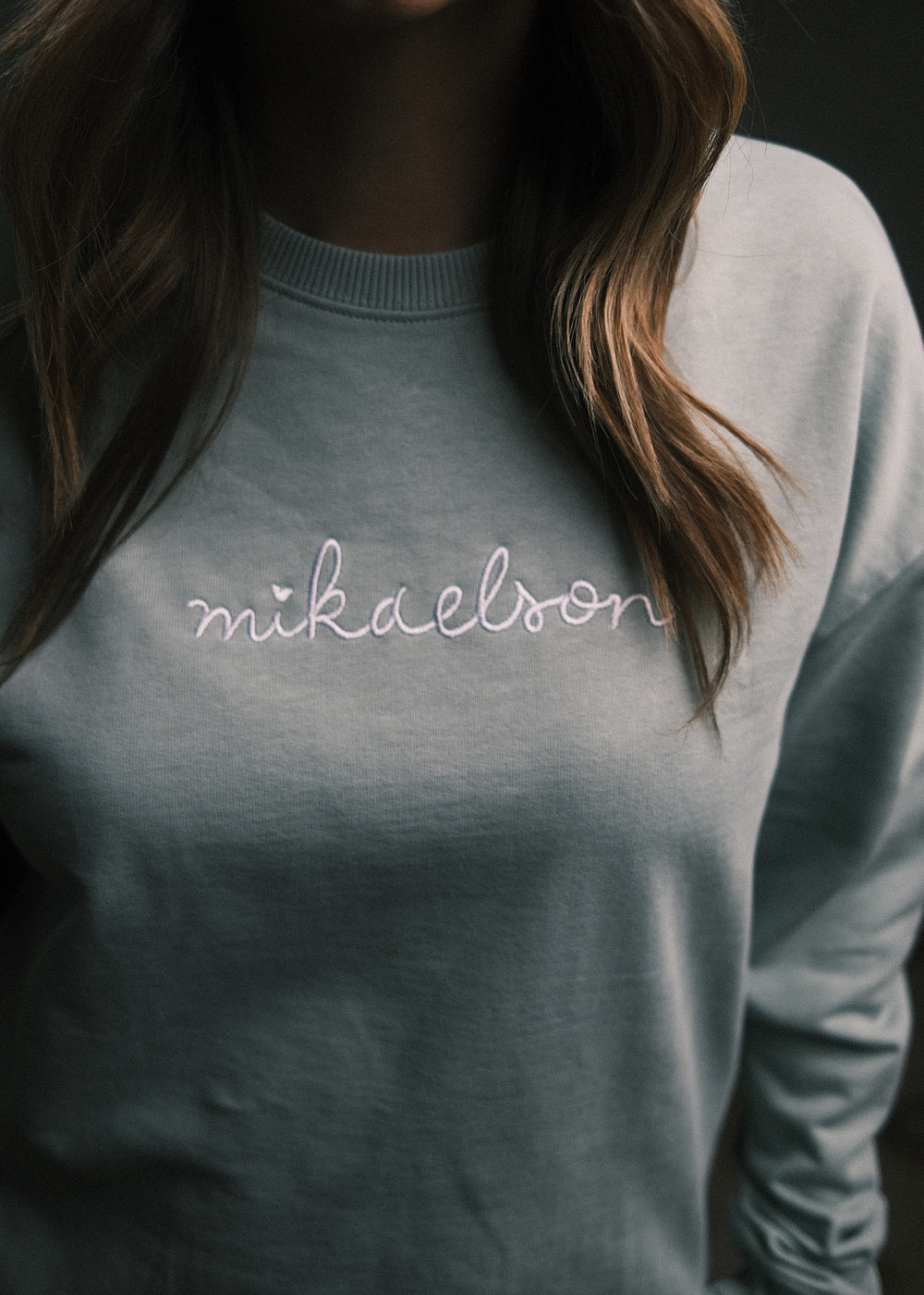 This premium vintage crewneck is embroidered with “Mikaelson” across the chest and “Family is Forever” down the sleeve — both in Riley Voelkel’s own handwriting. A sibling piece born from the Riley x Daniel collab, it celebrates the Mikaelson legacy in the coziest way.